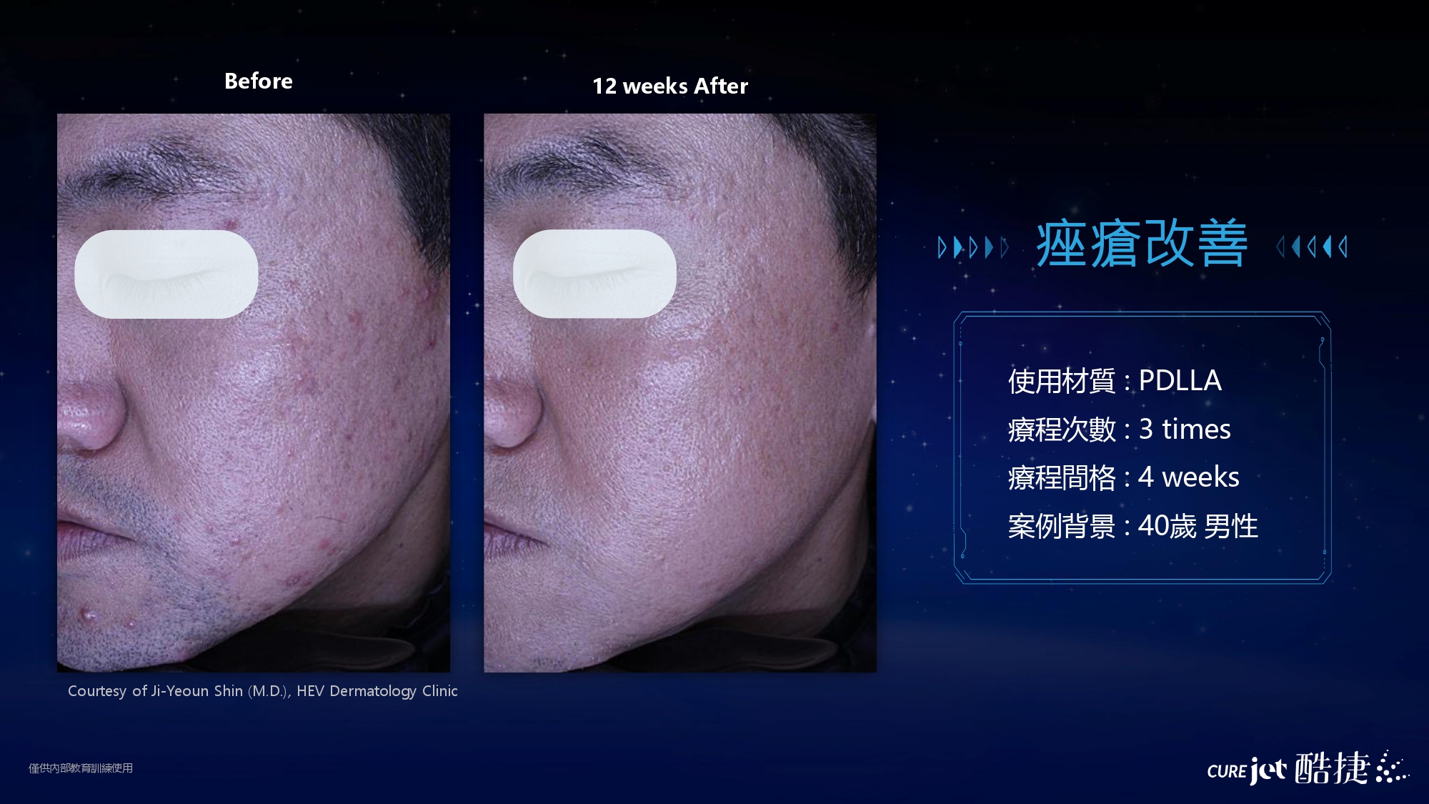 CUREJET 酷捷是一種來自韓國的第四代無針水光注射技術。 它利用獨特的「衛星磁浮科技」,將保養精華霧化成奈米級粒子,透過高速推進技術精準地注入肌膚真皮層,達到高效修護和膠原蛋白增生的效果。這種技術的優勢在於無針、無痛感,恢復期短暫,且可客製化劑量、深度和速度。