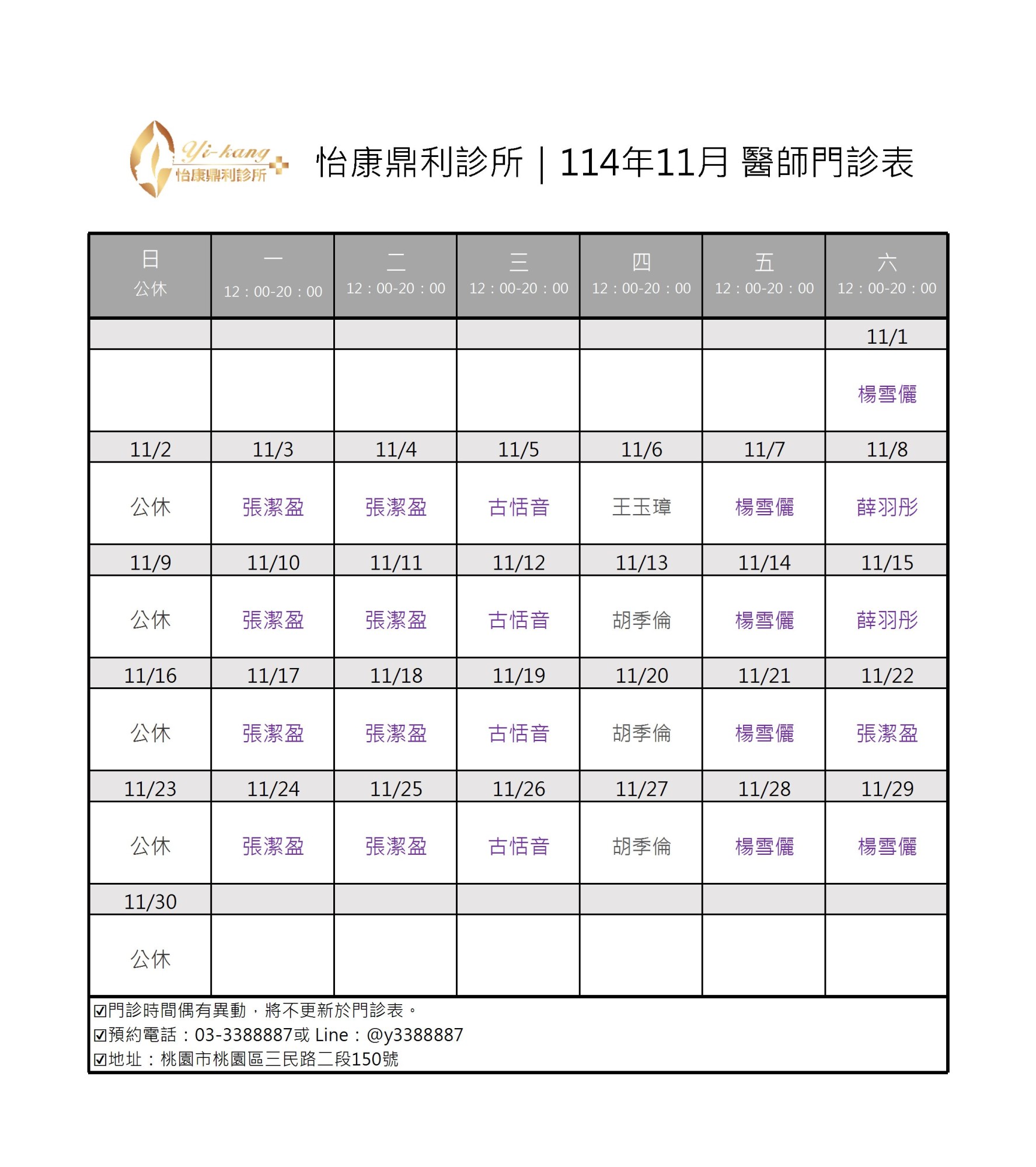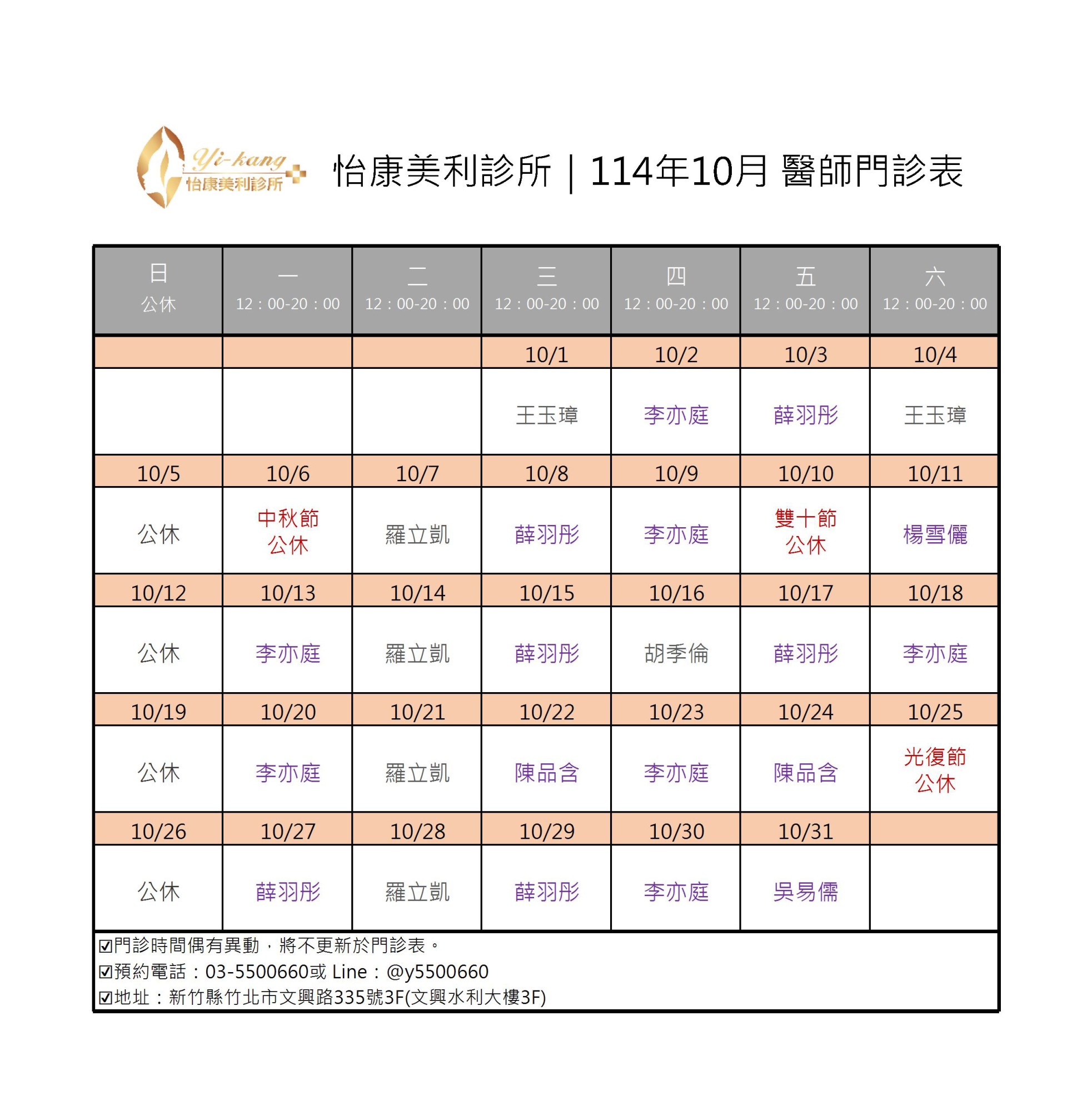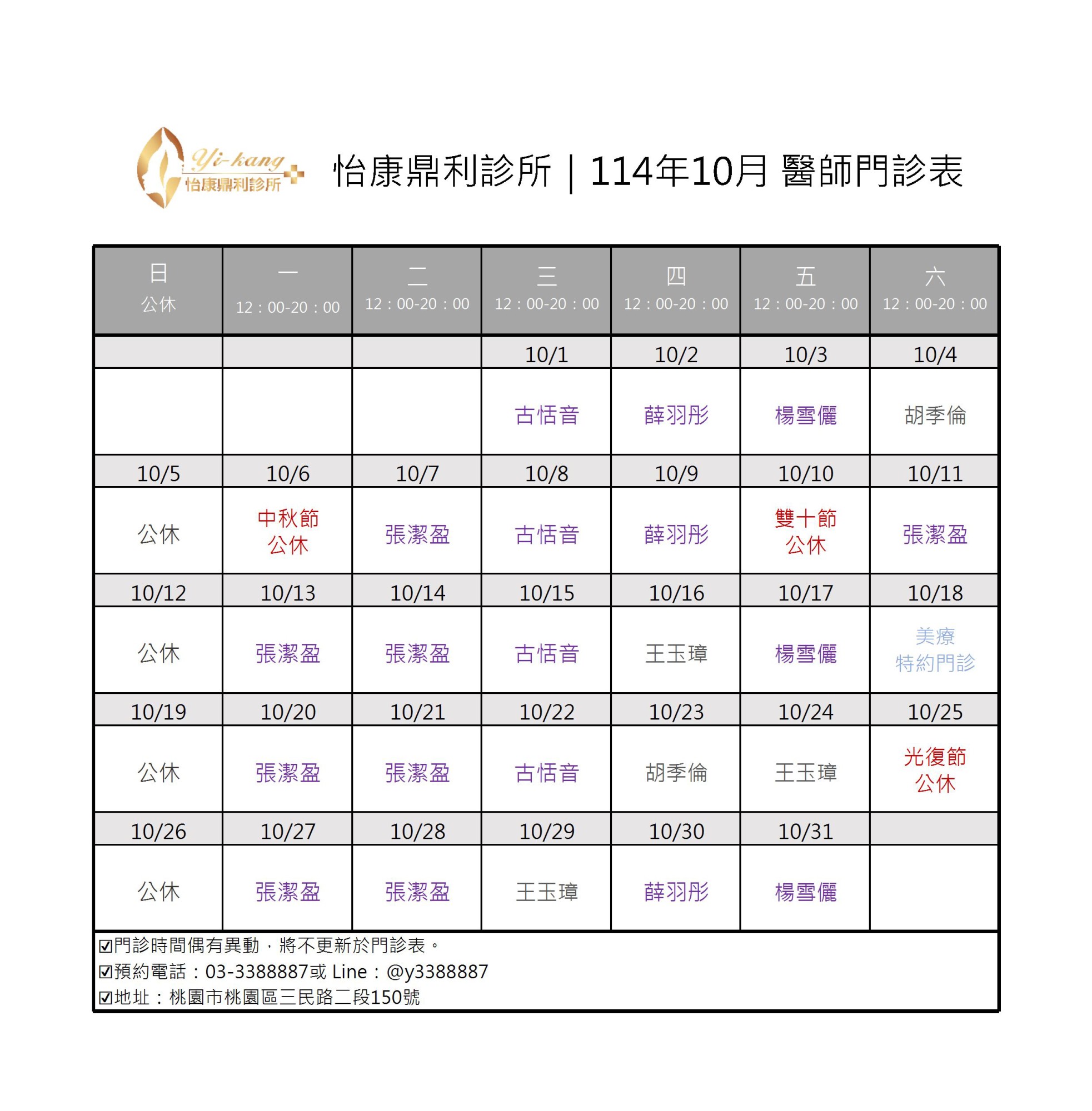 醫師門診表
