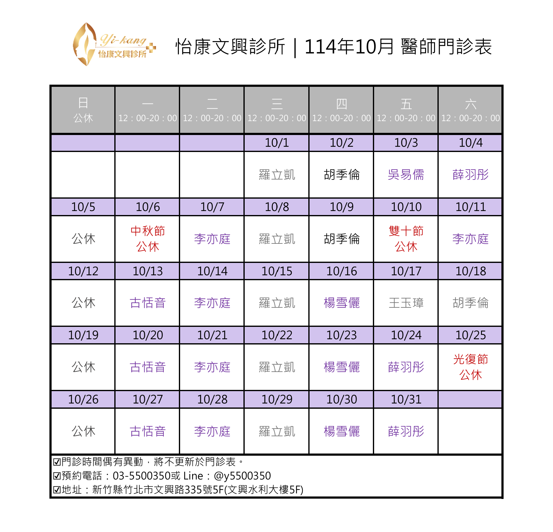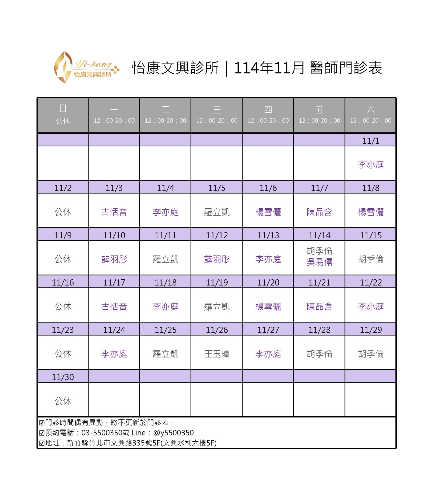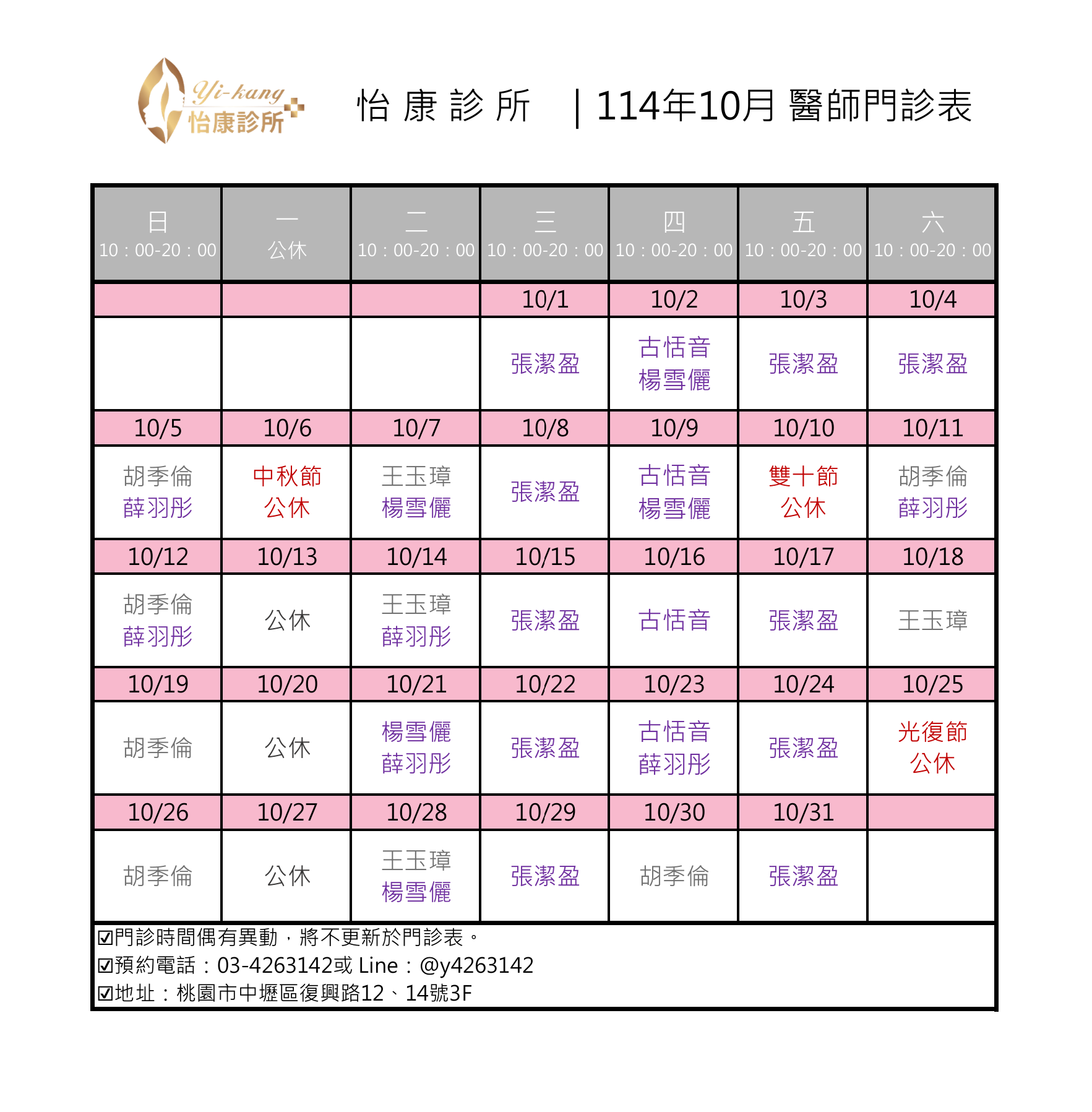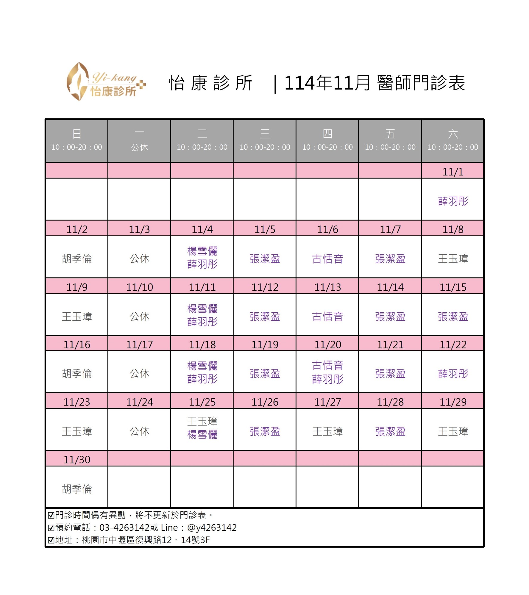 醫師門診表